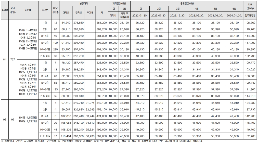 - 98㎡ : 449,100,000원 ~ 509,000,000원