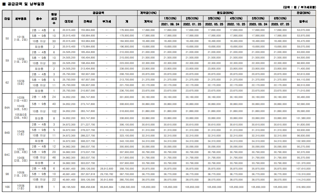 - 84㎡A : 301,600,000 ~ 338,600,000