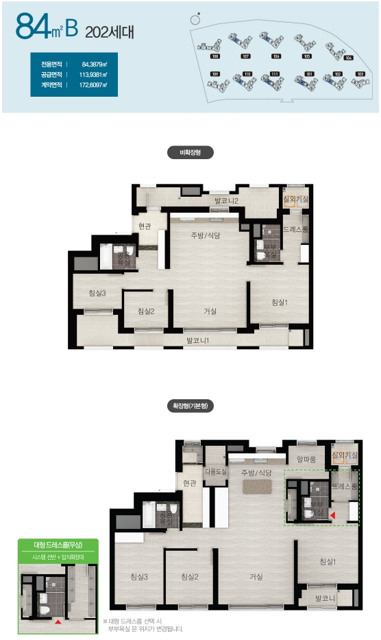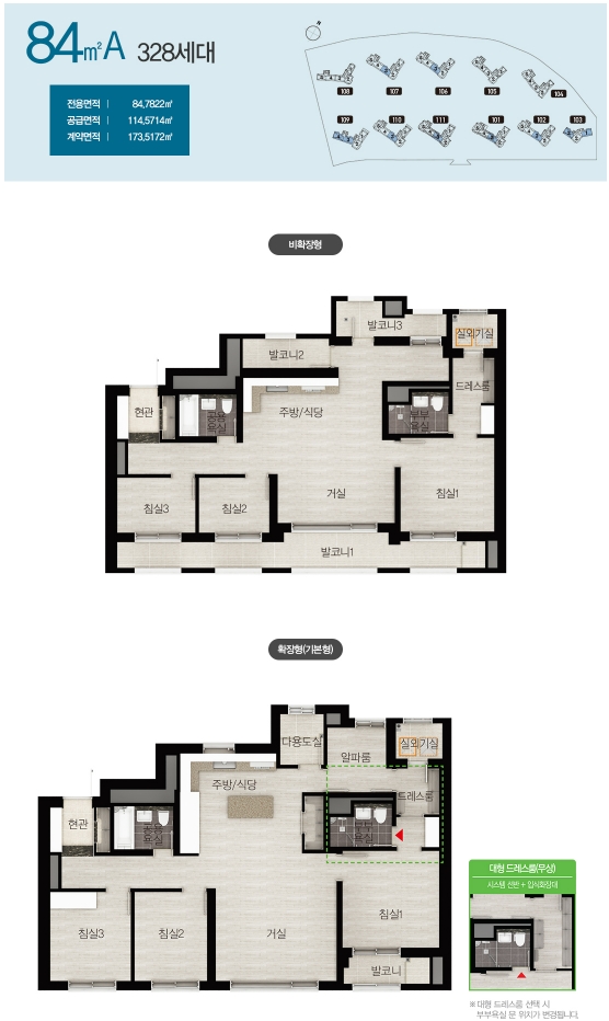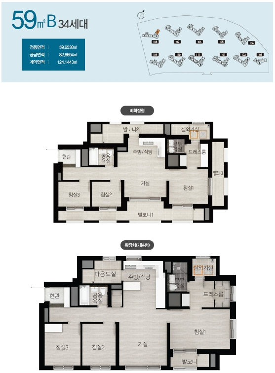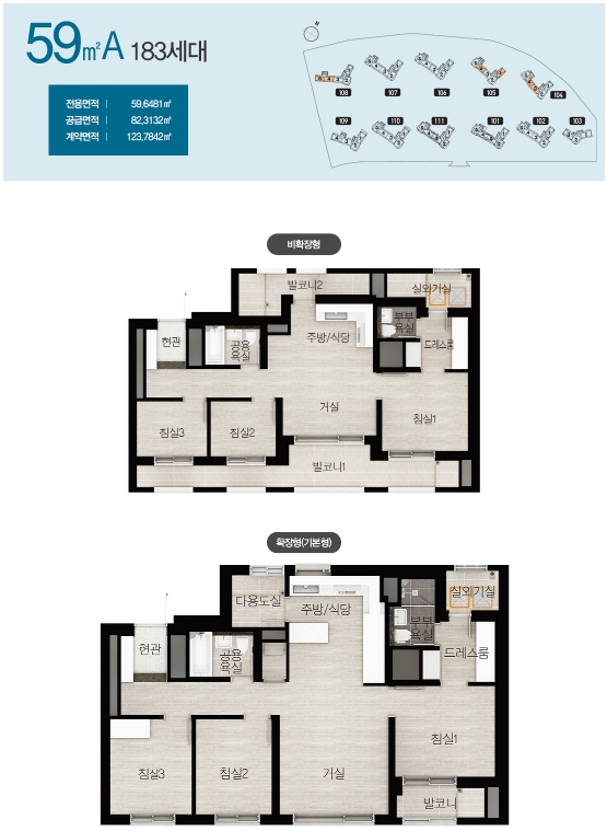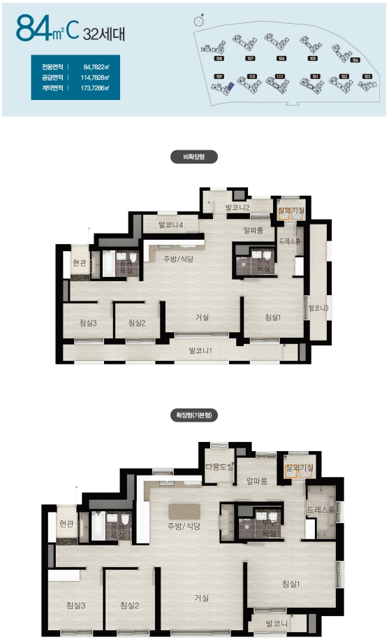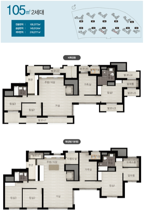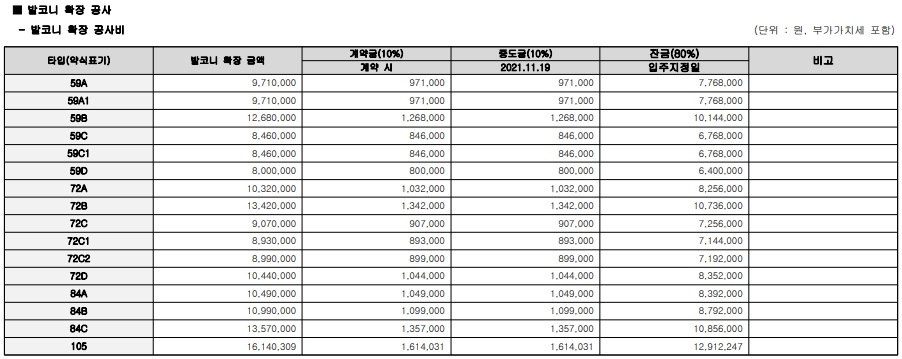 - 타입별 발코니 확장비용이 조금씩 차이가 있으니 확장형 선택 예정이신 분들은 분양가와 합하여 계산해보시기 바랍니다.