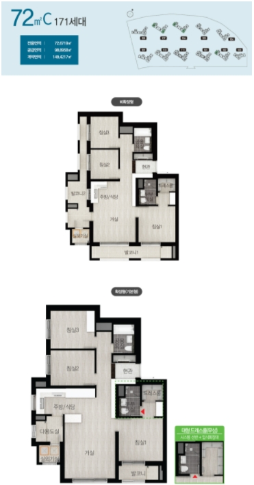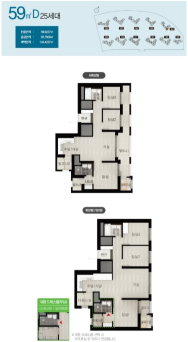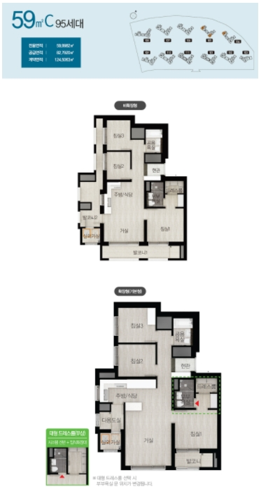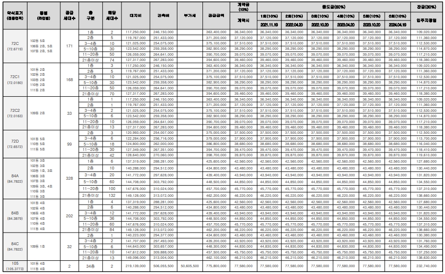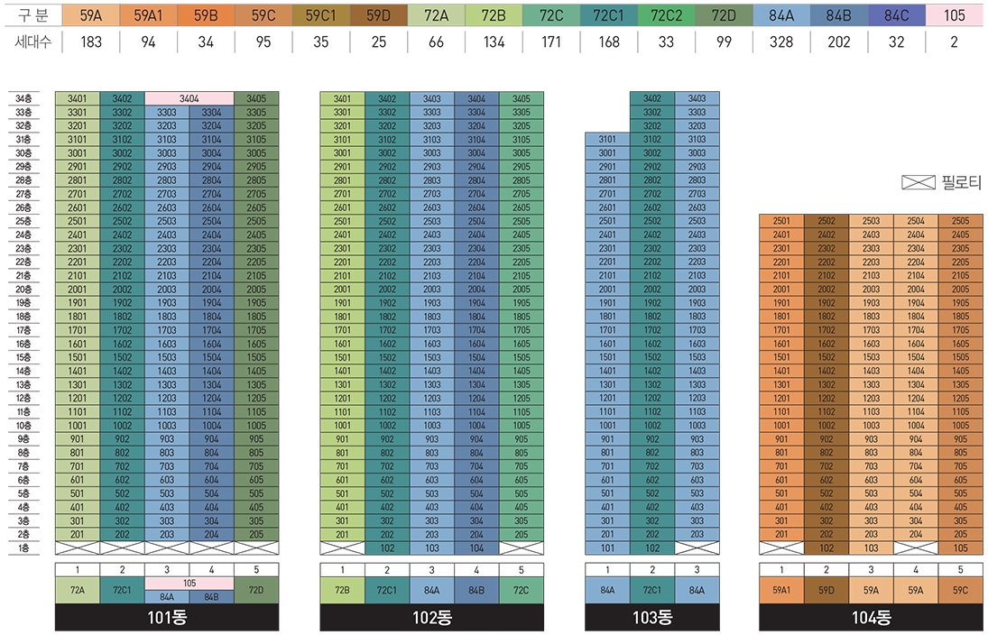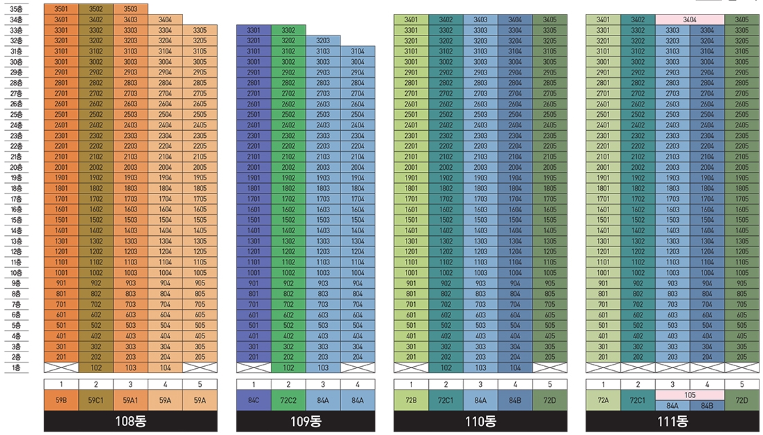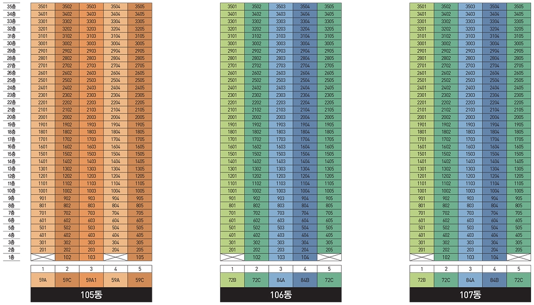 다양한 타입이 존재하는 만큼 타입별로 골고르 분포하기 위해서 호수 배치 역시 신경쓴 모습 볼수가 있습니다.