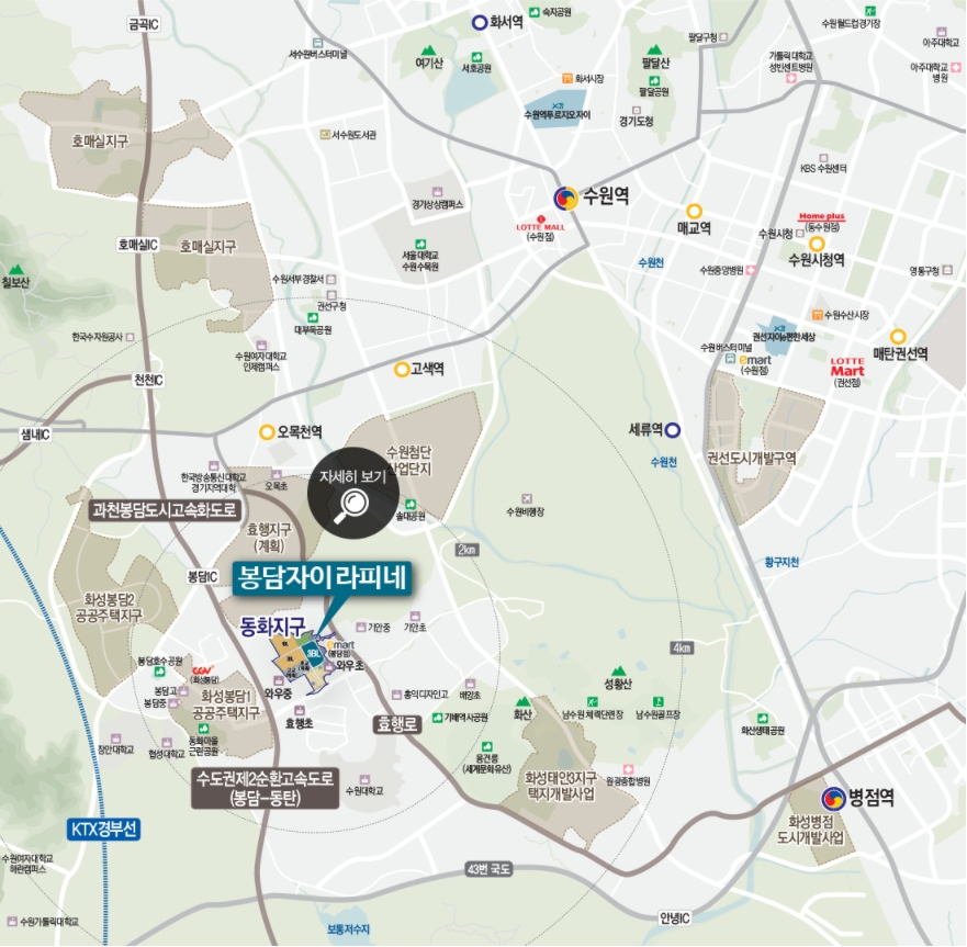 또한 이마트, 하나로마트, CGV등 생활인프라 잘 형성되어 있는것이 특징입니다. 수원 호매실 지구, 와우지구, 봉담지구 등 주변에 인프라 잘 갖춰져 있는 생활권 형성되어 있고 수도권 제2순환고속도로, 과천-봉담고속도로 봉담IC 및 수인분당선 오목천역 이용하기 편리한 지역이라 교통망 형성도 잘 되어 있다는것이 특징입니다. 업무지구와 멀지 않은 거리에 있기 때문에 직주접근 유리해서 워라벨 유지하기에 최적의 위치라고 할수 있겠습니다.
