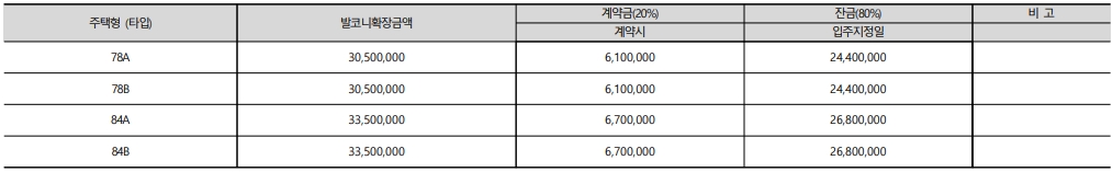 발코니 확장 비용은 78 타입은 30,500,000원 이며 84타입은 33,500,000원 입니다. 화장형 선택 하실 분들은 분양가와 확장비용 합산하여 계산하시기 바랍니다.