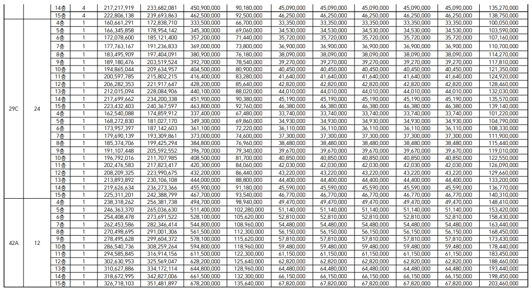 세운 푸르지오 헤리시티 분양가는 확장 및 옵션을 선택했을때 달라지겠지만 기본적으로 아래와 같습니다.