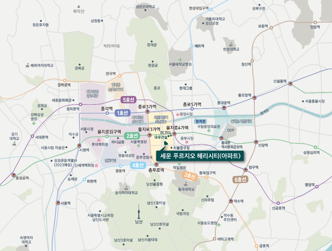 남산 인접과 청계천 또한 가까워서 업무뿐만 아니라 생활의 여유까지 충분하게 즐길 수 있고 상업 및 문화 역시 완벽한 지역이라 입지 조건중 어느 하나가 빠지는 것 없이 완벽한 곳이라고 말할 수 있겠습니다.