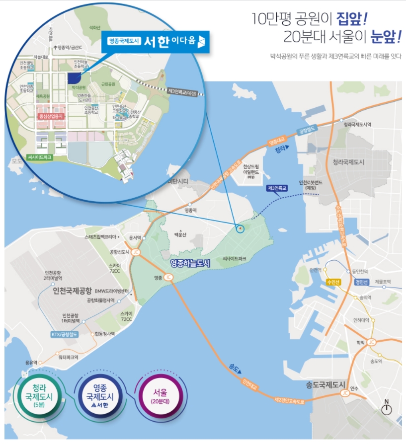 단지앞에 있는 박석공원은 10만평대 대규모로 내 집 앞마당처럼 이용할수가 있고 제3연륙교 개통 예정 및 제2공항철도, 9호선직결 운행 등 쾌속 광역교통망 구축 예정되어 있습니다. 청라 국제도시와는 5분, 서울은 20분대 진입할수 있어서 출퇴근 또한 편안하게 가능할것으로 예상됩니다.