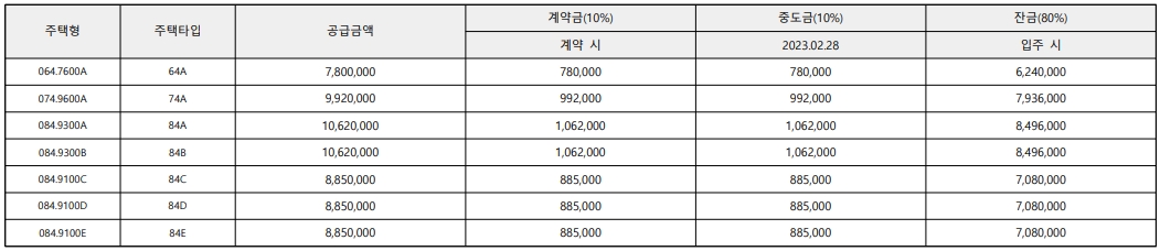 발코니확장금액은 타입별로 7,800,000원 에서 10,620,000원 까지 다양하게 분포되어 있으니 확장형 선택하실 분들은 미리 확장 비용까지 고려해보시기 바랍니다.