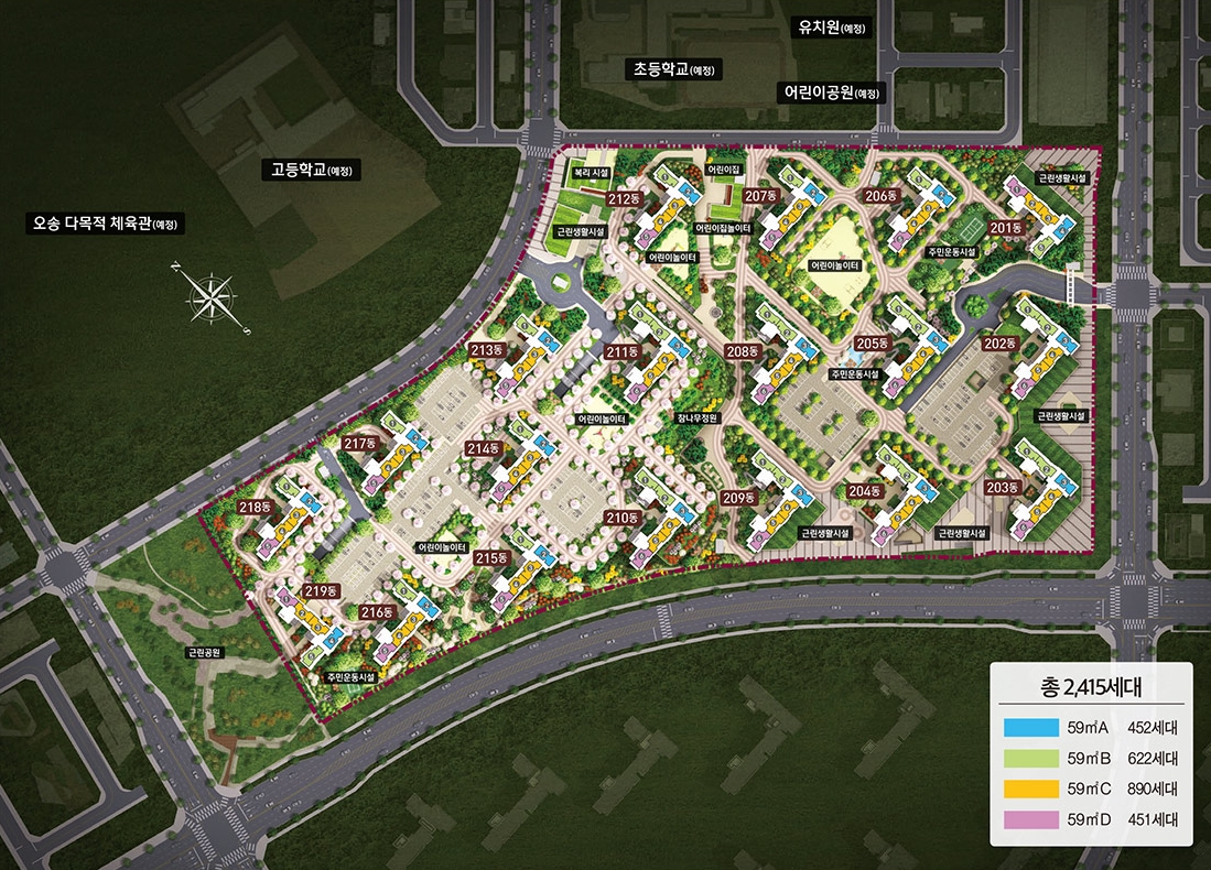 오송 지역은 오송화장품산업단지, 첨단 의료복합단지 등 생명과학, 바이오산업 인프라 구축과 함께 KTX 오송 역세권 개발로 인하여 주목 받는 지역 입니다. KTX 오송역 이용으로 수도권 진입에 용이하고 천안 ~ 청주공항복선화전철 예정으로 대중교통 편의성 까지 챙겼습니다. 또한 주변 초, 중, 고등학교 예정으로 자녀 안심 교육 가능하기 때문에 다양한 수요가 몰릴것으로 예상됩니다.