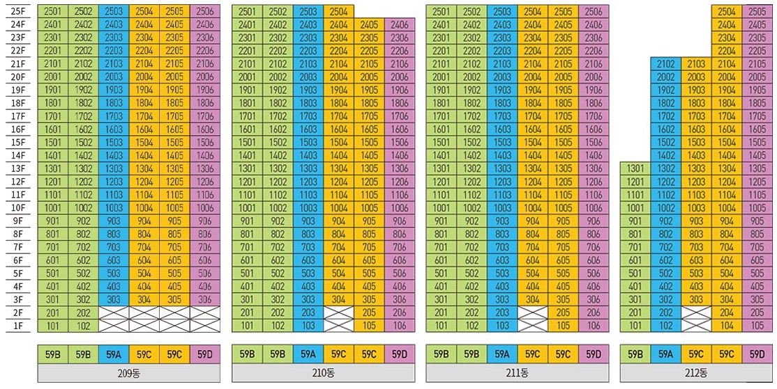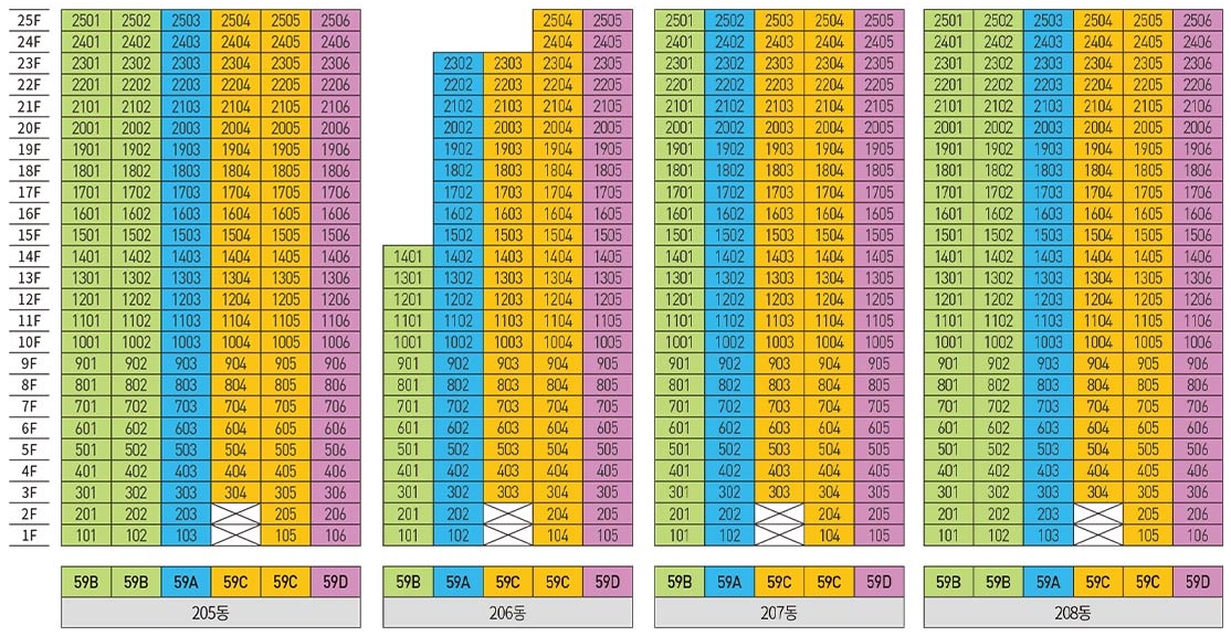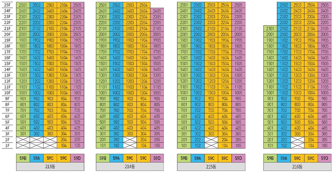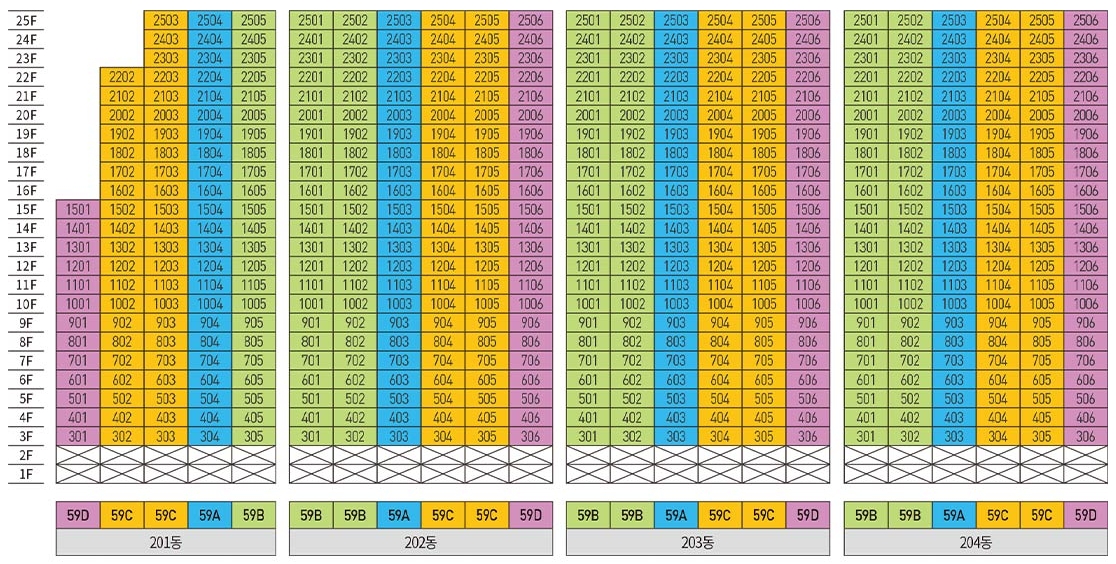 총 4개 타입을 적절히 배치해서 다양한 니즈를 충족하기 위한 설계를 볼수 있었습니다. 효율적인 동 배치로 인하여 최대한 막힘 없이 채광과 조망권 확보하기 위한 단지 조성 눈여겨 보실 필요가 있을것 같습니다.