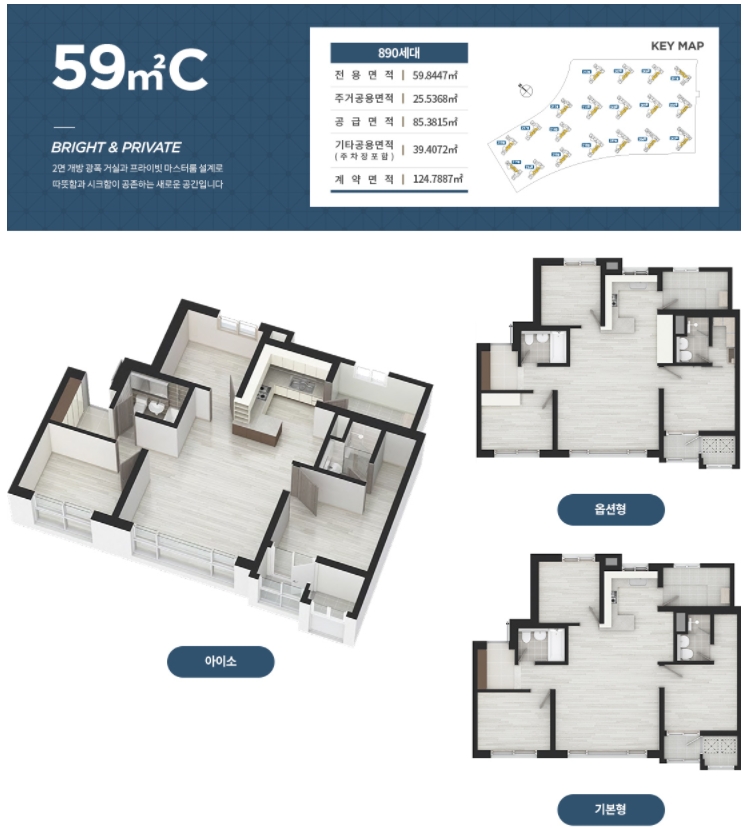 59C 타입은 주방은 다른 타입에 비해서 작을순 있지만 방이 다른 타입에 비해서 큰것이 특징입니다. 가족 구성원이 많을때 선택하면 유리한 타입으로 보입니다.