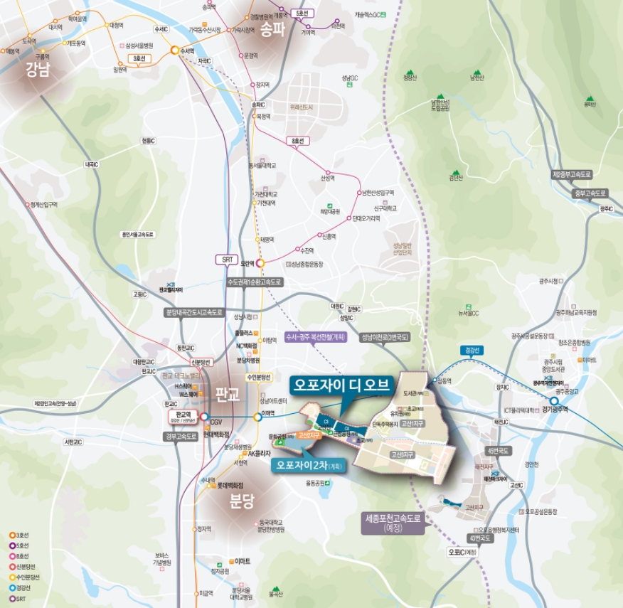 오포 자이디오브 입지조건은 경간선 경기 광주역을 이용해 판교의 접근성 우수 하고 성남 이천로 (3번국도) 이용으로 판교 테크노벨리등 주요 업무지구를 빠르게 출퇴근 할수 있는 이점을 가지고 있습니다. 단지 주변 태전지구는 이미 2015년 부터 공급이 시작되 현재는 마무리된 상태라 상권과 학업시설 및 근린공원등이 갖춰져있어 입주와 동시에 인프라를 누릴수 있는 입지조건을 가지고 있습니다.