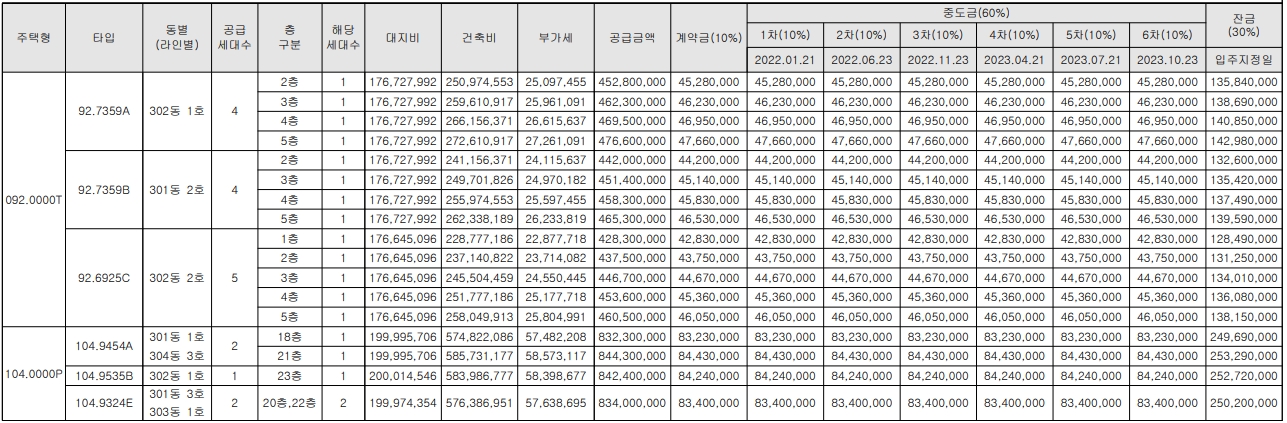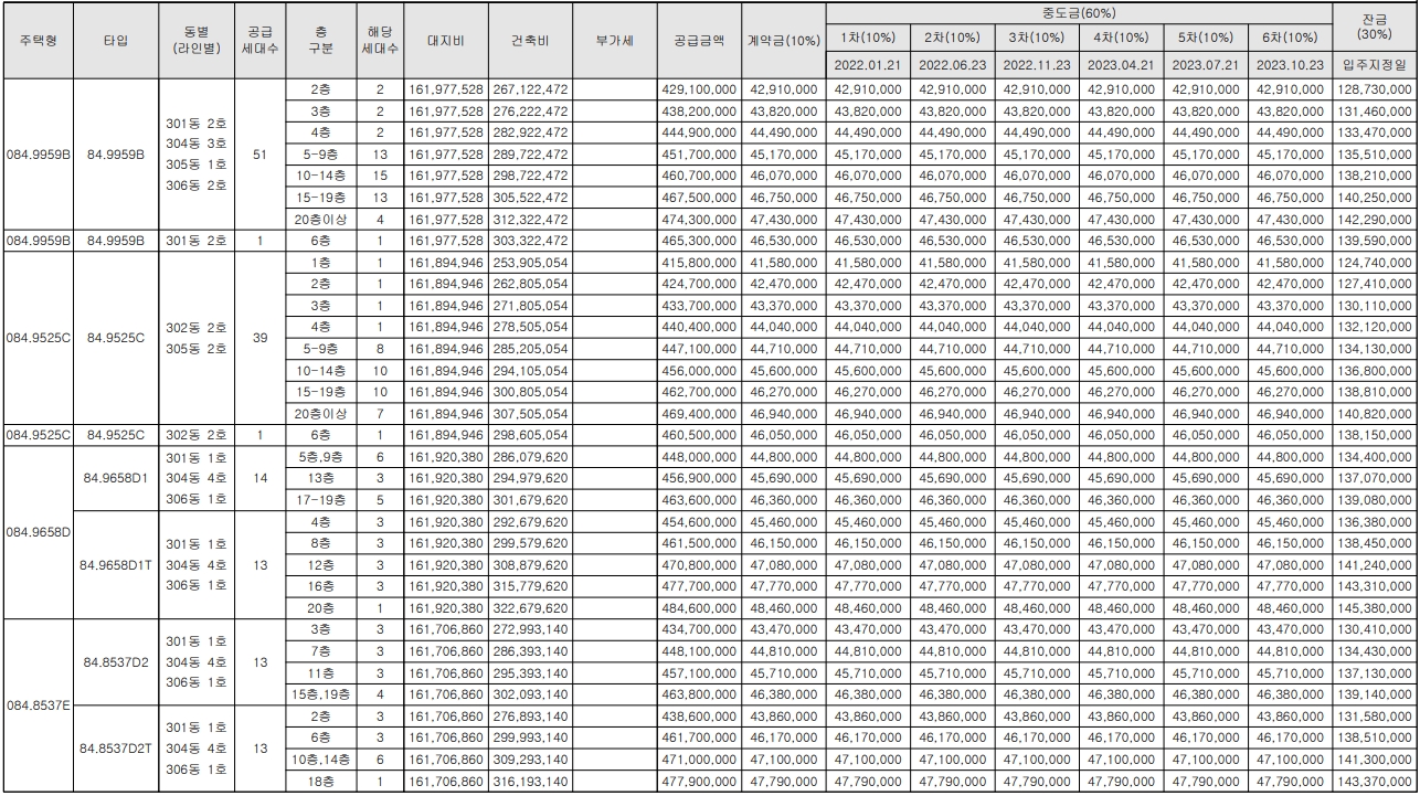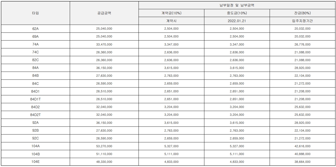 타입이 워낙 다양하다보니 분양가도 천차만별 인데요 보기 좋게 한눈에 정리해보도록 하겠습니다.