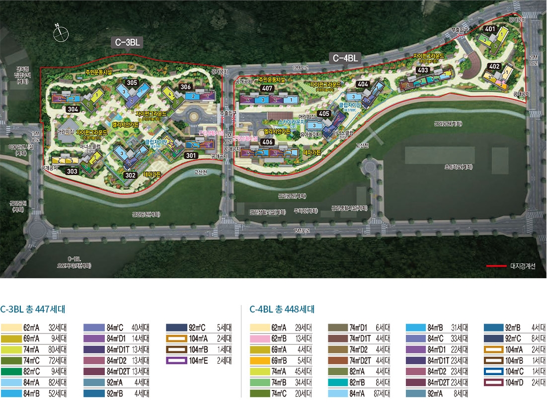 대단지에 걸맞는 넓은 동 배치로 대부분 남향을 바라보게 설계하였는데요 모든 호수가 채광은 어느정도 확보될것으로 보입니다. 단지 주변에 바로 초등학교 예정지가 있어서 초등학교를 품은 아파트로 그 프리미엄이 더욱 상승할것으로 전망됩니다.