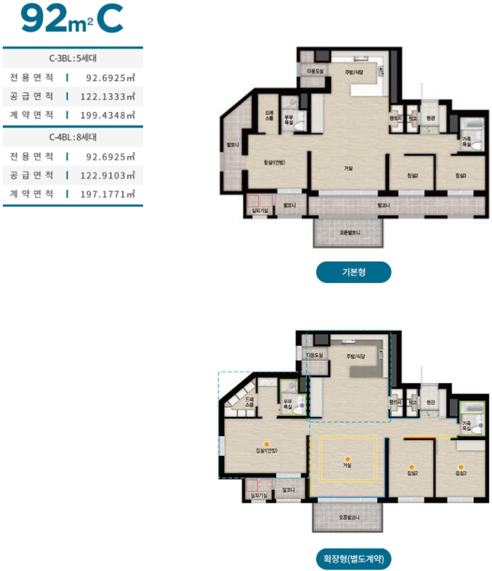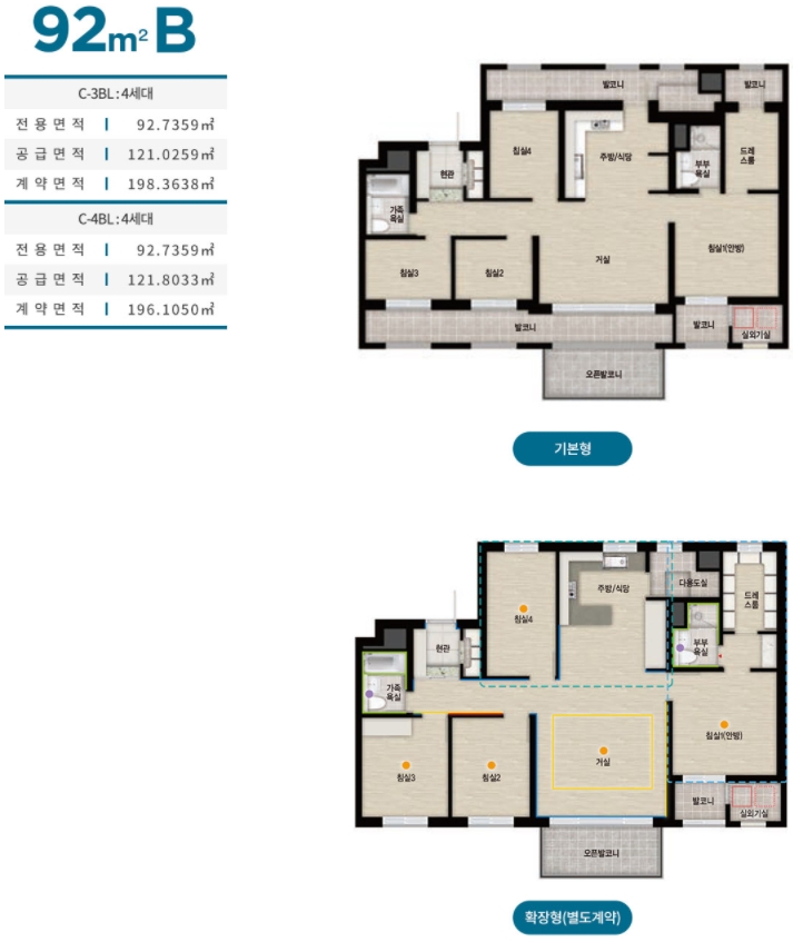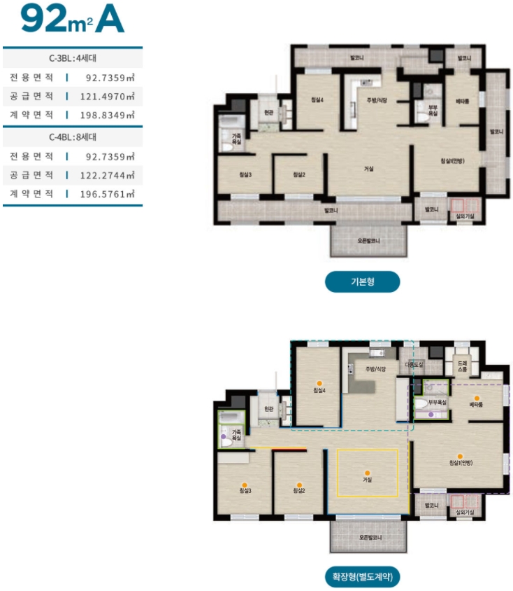 84타입과 유사하지만 포켓테라스를 가지고 있는 92타입 역시 좀더 넓은 집에 거주하고 싶으신 분들의 니즈에 부합하는 타입으로써 84타입이 아쉬운 분들에게 인기가 많을 것으로 예상이 됩니다.