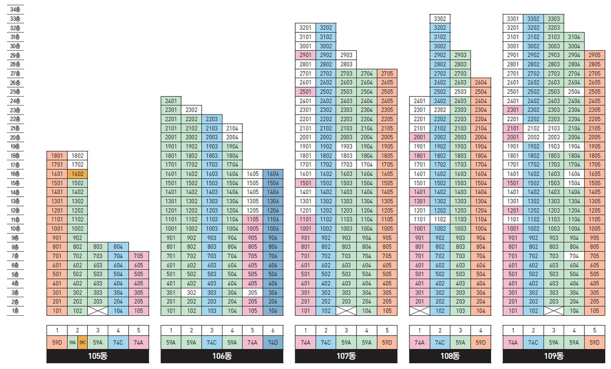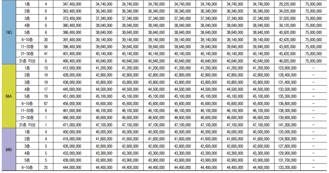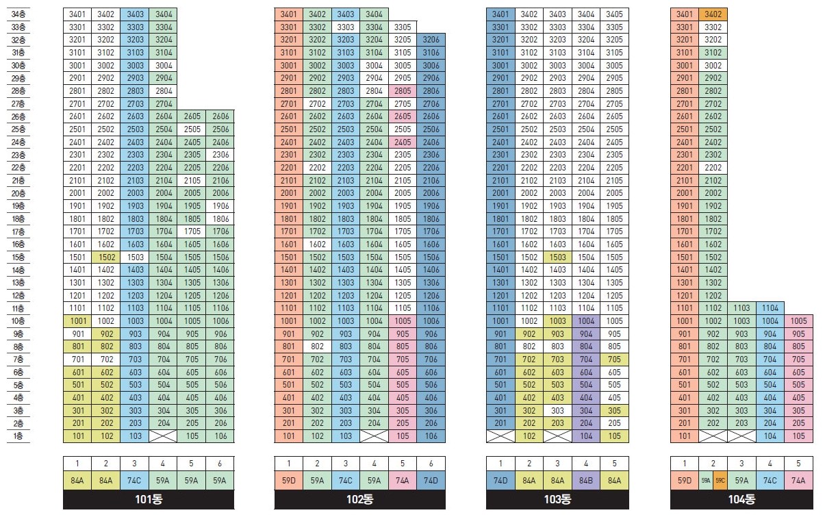 | 형태 | 59㎡A | 59㎡B | 59㎡C | 59㎡D | 74㎡A | 74㎡B | 74㎡C | 74㎡D | 84㎡A | 84㎡B |