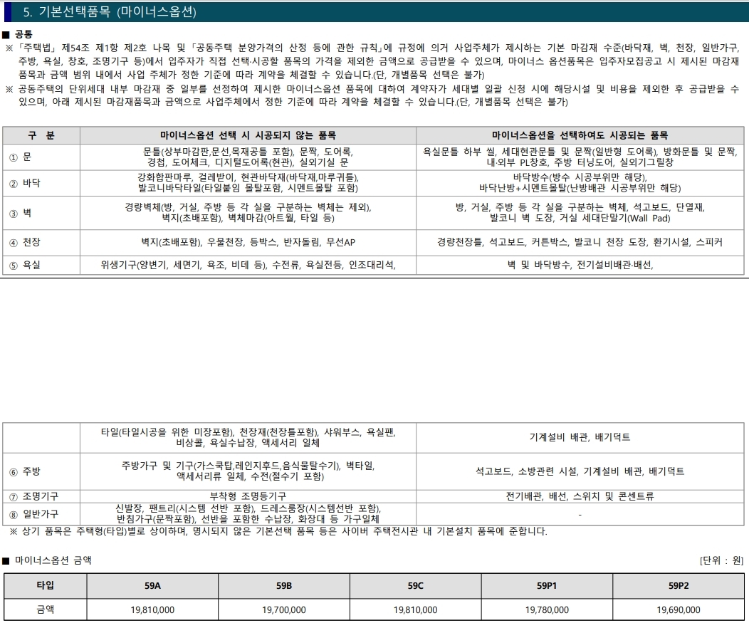 마이너스 옵션 선택시 시공되는 부분과 시공되지 않는 부분 확인 하시기 바랍니다.