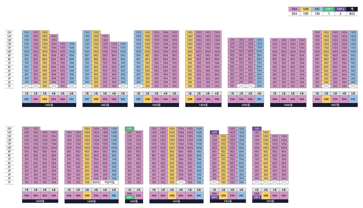 - 59A타입 : 특별공급 554세대, 일반공급 86세대