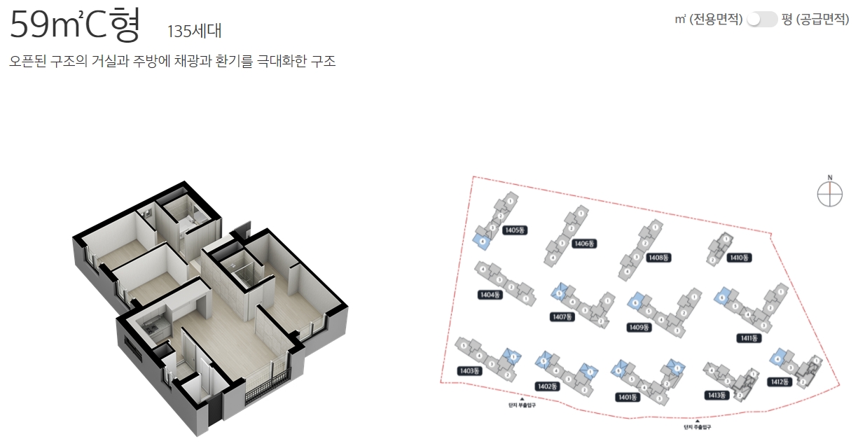 - 59C타입 : 특별공급 135세대, 일반공급 23세대