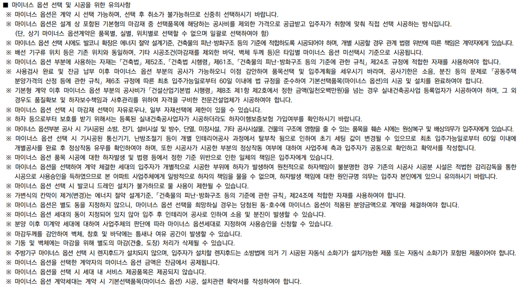 마이너스 옵션을 선택하셔서 자신만의 인테리어를 꿈꾸시는 분들도 계실 텐데요 마이너스 옵션 비용과 유의사항을 확인하셔서 마이너스 옵션 선택 시 고려해야 하는 부분도 미리 생각해 보시기 바랍니다.