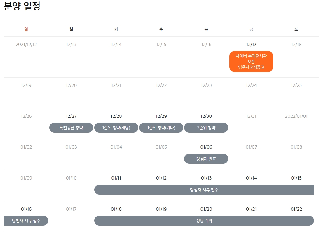 - 특별공급 청약 : 12월 27일