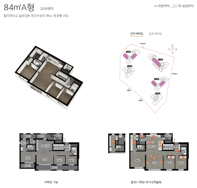 - 84A타입 : 특별공급 107세대, 일반공급 102세대
