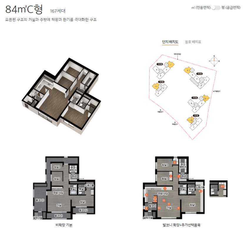 - 84C타입 : 특별공급 86세대, 일반공급 81세대