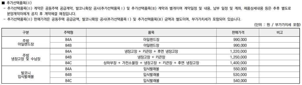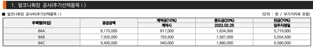 분양가 및 발코니 확장 비용