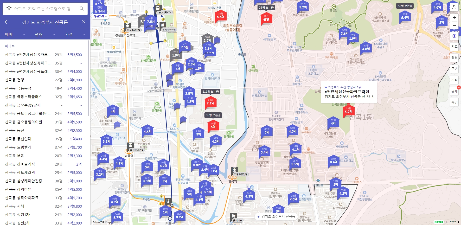 이편한세상 신곡 파크프라임 아파트 단지 주변의 동일 크기의 가격대는 7억대를 형성하고 있기 때문에 분양가 대비 높게 형성되어 있다는 점도 참고하시기 바랍니다.