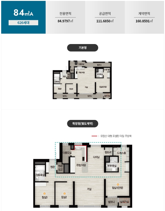 - 84A타입 : 특별공급 329세대, 일반공급 297세대