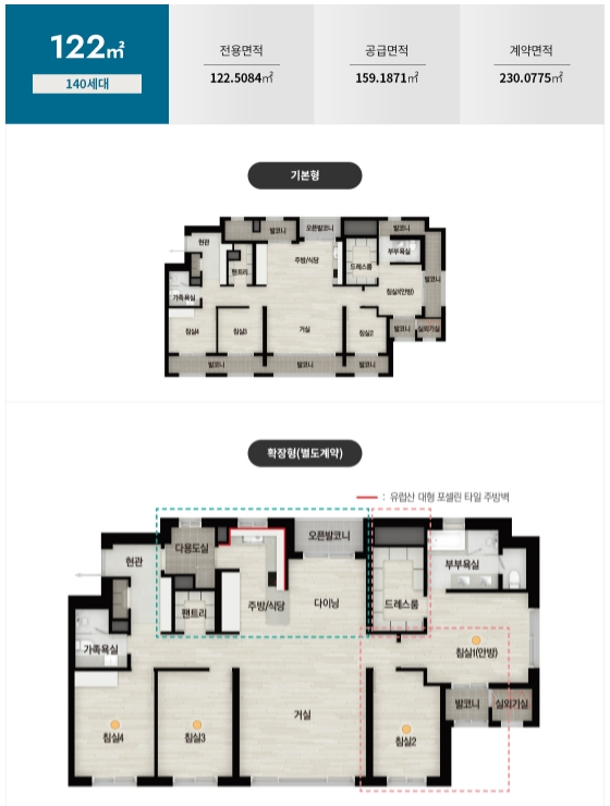 - 122타입 : 특별공급 18세대, 일반공급 122세대