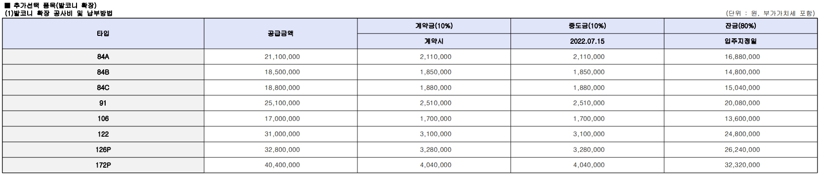 - 84C타입 : 372,000,000원 ~ 412,000,000원