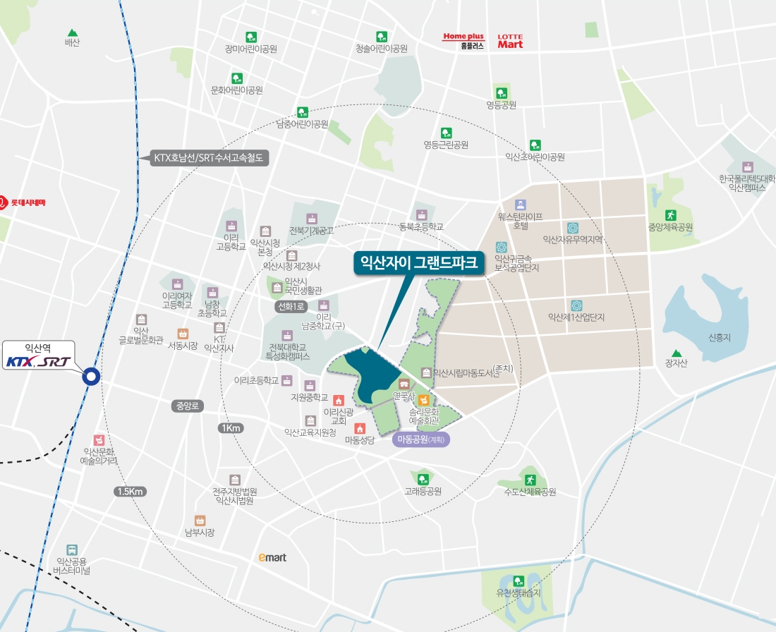 KTX와 SRT를 이용하기 편리한 익산역에서 멀지 않은 자리에 위치한 익산자이 그랜트파크 아파트는 다양한 생활 인프라를 그대로 이용할 수 있기에 그 입지 환경은 아주 우수하다고 볼 수 있는데요 익산 자유무역지역, 익산 제1산업단지 등 직주근접을 꿈꾸시는 분들에게 좋은 입지 환경을 제공할 것으로 보입니다.