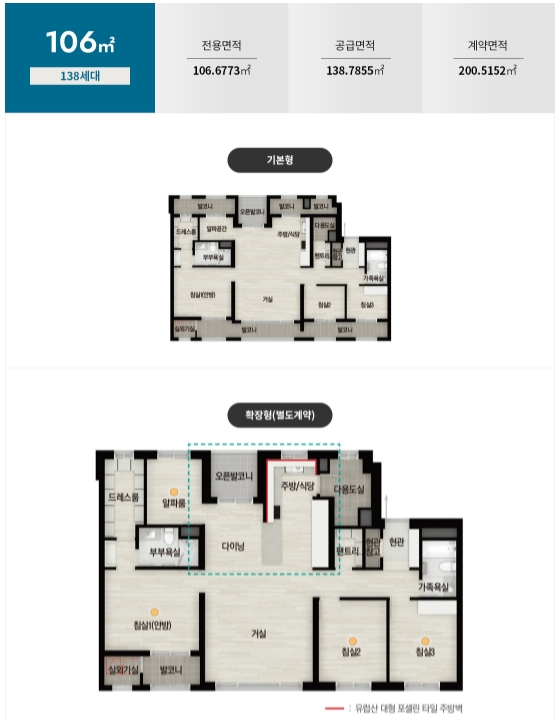 - 106타입 : 특별공급 18세대, 일반공급 120세대