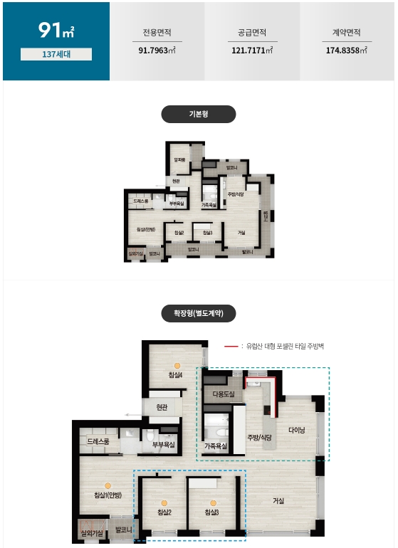 - 91타입 : 특별공급 18세대, 일반공급 119세대