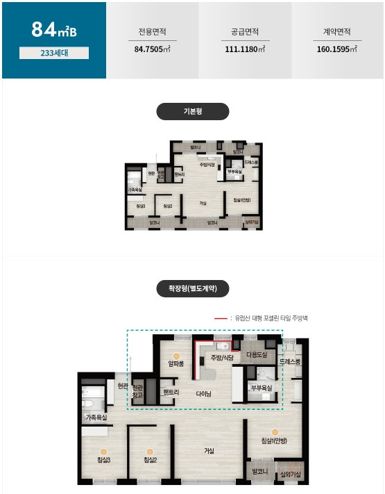 - 84B타입 : 특별공급 123세대, 일반공급 110세대