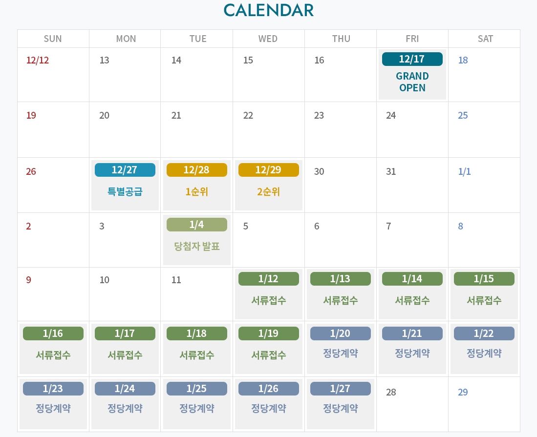 - 특별공급 : 12월 27일