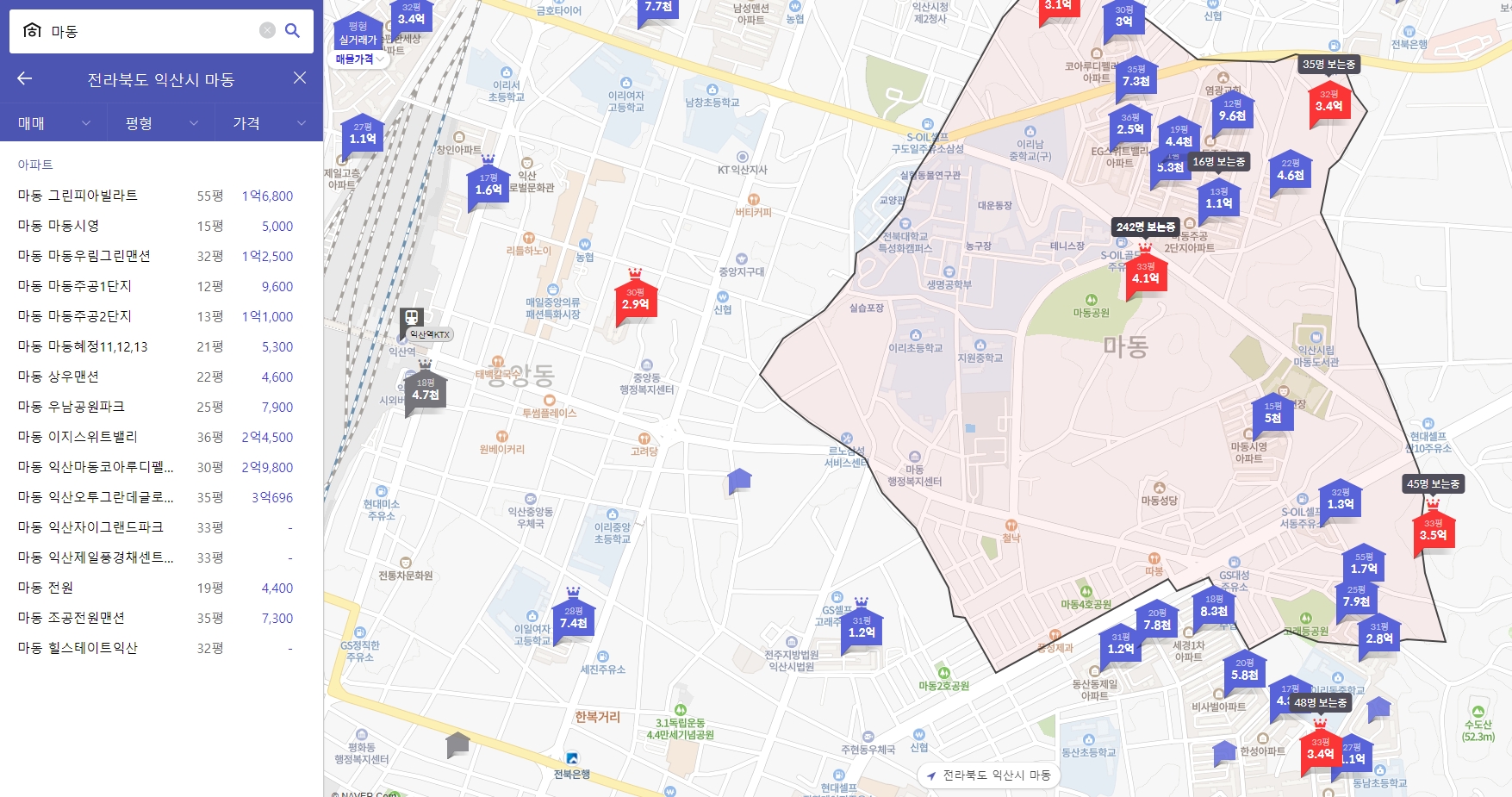 익산자이 그랜드파크 아파트가 위치한 전라북도 익산시 마동의 다른 아파트 시세를 살펴 보신 후 충분히 비교해보시기 바랍니다.