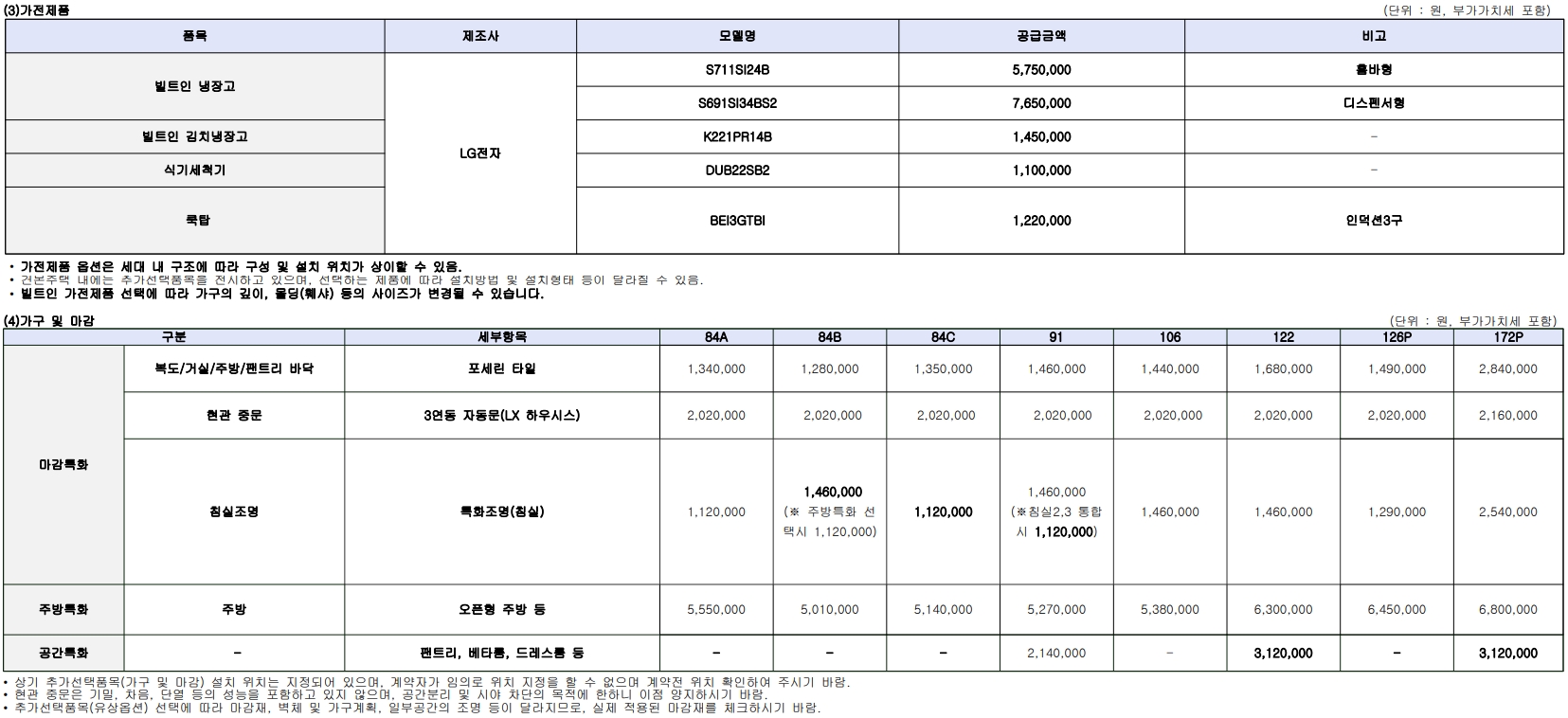 - 126P타입 : 특별공급 0세대, 일반공급 5세대