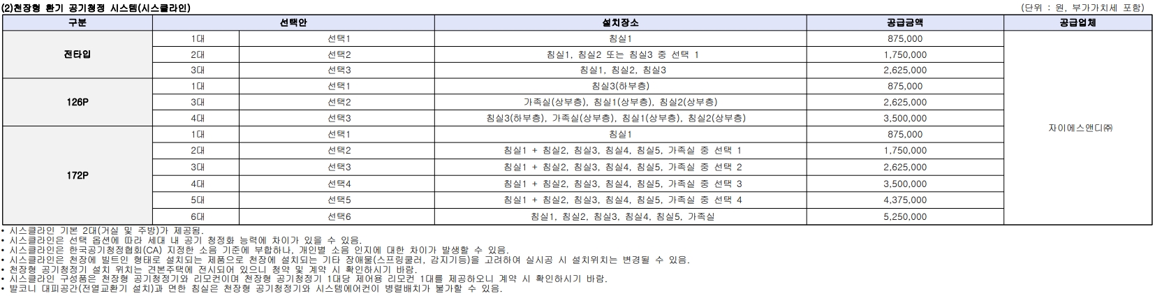 시스템 에어컨, 공기청정 시스템, 가전 옵션, 가구 및 마감 옵션 등 다양한 옵션을 선택할 수 있는 익산자이 그랜드파크 아파트의 옵션 표를 참고하셔서 옵션 비용까지 고려한 분양가 생각하시면서 청양 준비하시면 좀 더 수월하게 진행하실 수 있을 것이라 생각됩니다.