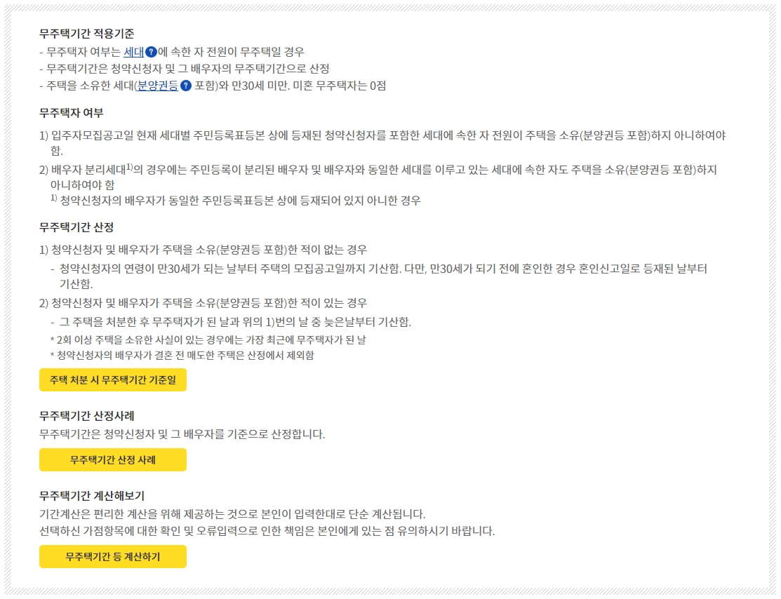 청약가점 계산하기 청약가점제에 의해 청약신청을 할 때에는 청약자 본인이 직접 주택소유여부, 무주택기간 및 부양가족수를 산정해야 하므로 신청전에 청약신청 시 유의사항 및 가점제도 내