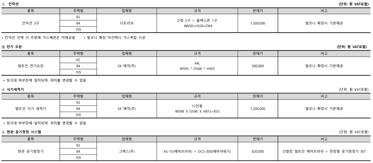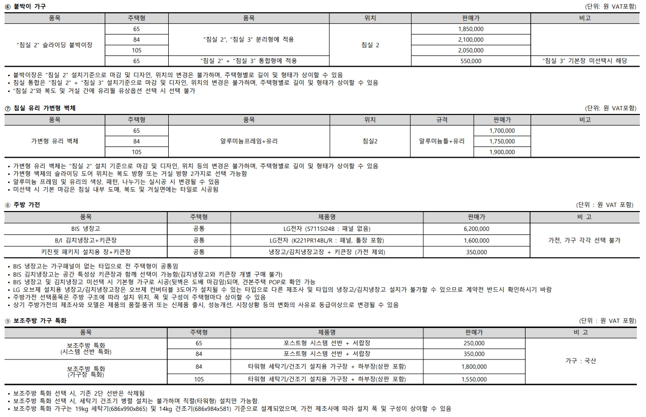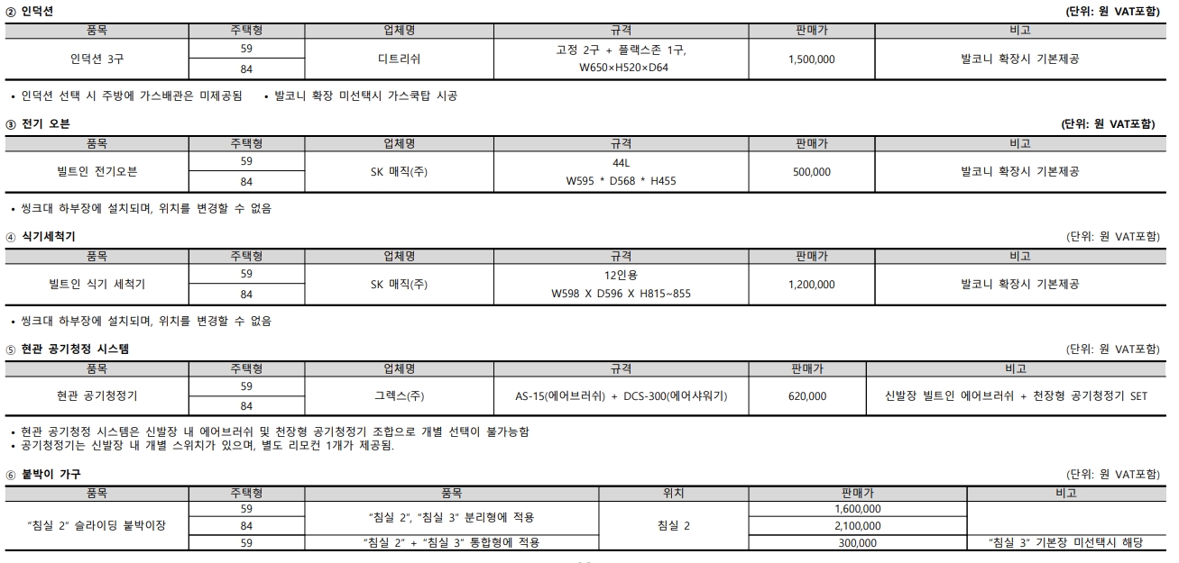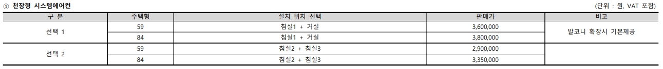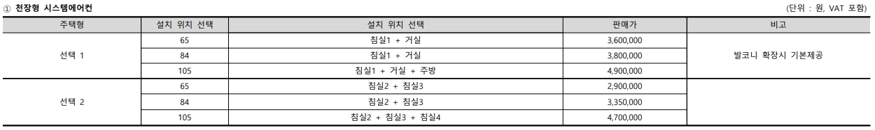 2단지 타입별 시스템 에어컨과 각종 옵션 가격 참고 하시기 바랍니다.