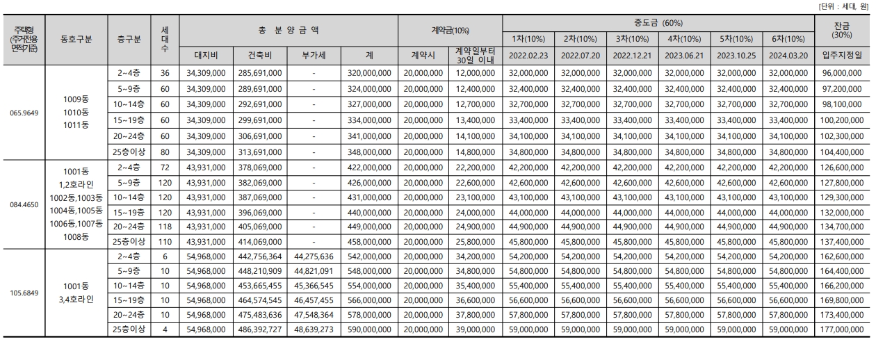 - 105 타입 : 542,000,000원 ~ 590,000,000원