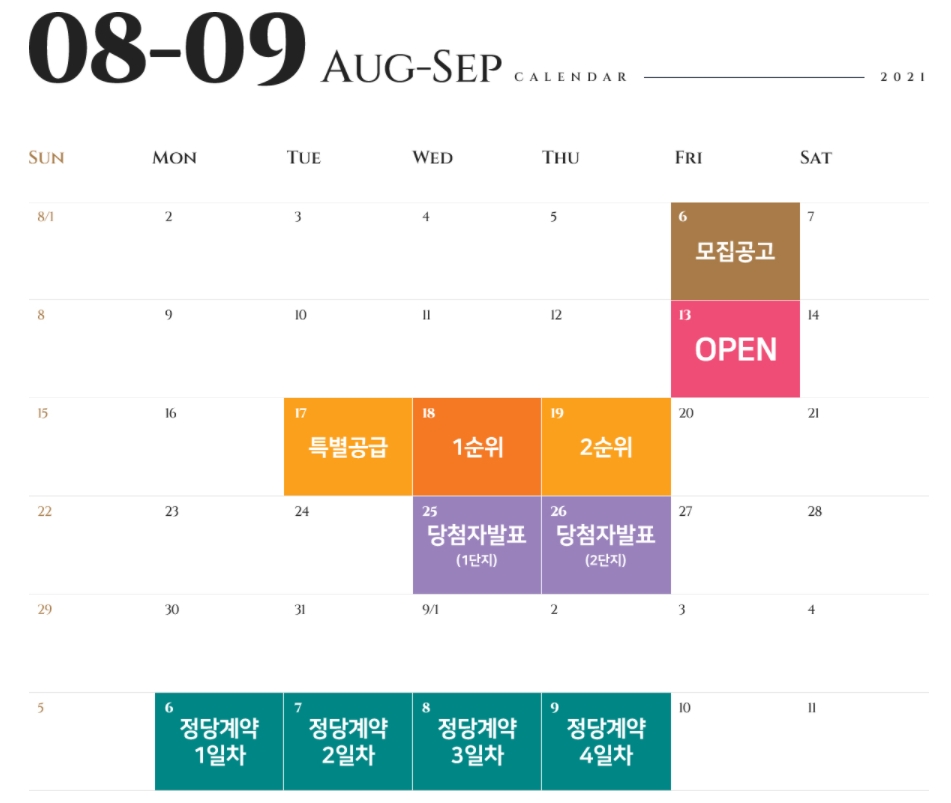- 8월 17일 : 특별공급 청약