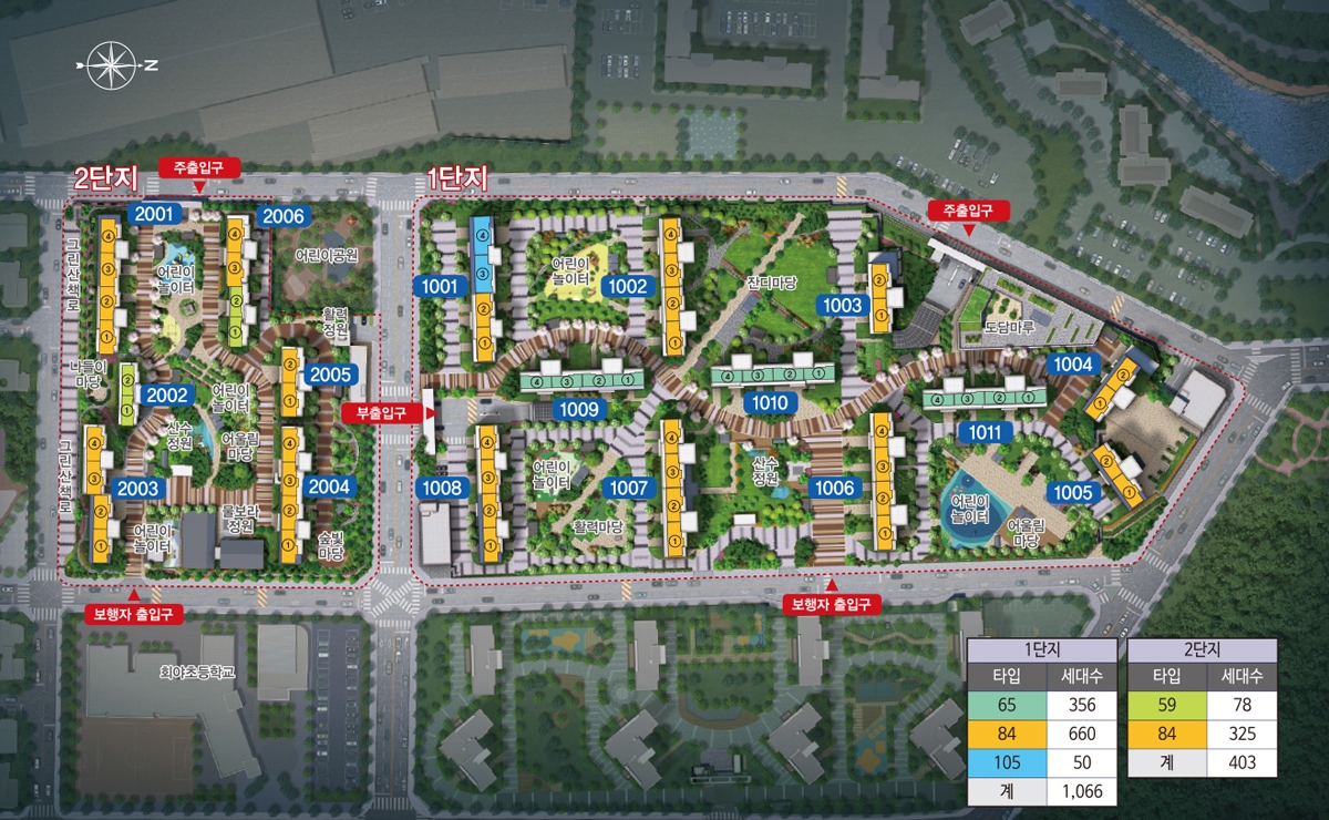 1단지 2단지는 도로 하나로 붙어 있는 형태이지만 청약은 따로 진행되는 것을 참고하시어 자신에게 알맞은 지역을 청약하시기 바라며 단지별로 존재하는 타입이 다르기 때문에 주의 깊게 살펴보셔야 되겠습니다.