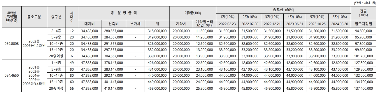 - 84 타입 : 422,000,000원 ~ 458,000,000원