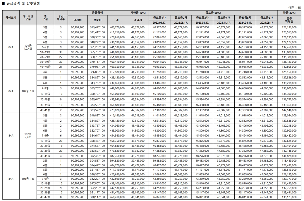84A 101동 1,2,3호 : 403,770,000 ~ 469,350,000