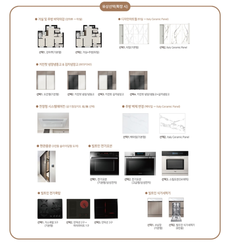 동해 프라우드 스위첸 유상 옵션 내역은 위에서 참고하실 수가 있는데요 확장을 선택했을 때만 선택할 수 있는 옵션이 있으니 청약 준비 중이신 분들은 옵션에 대한 고려도 충분히 해보셔야 합니다. 옵션의 선택에 따라서 초기 분양가가 달라지기 때문인데요 기본 분양가는 아래에서 알아보도록 하겠습니다.