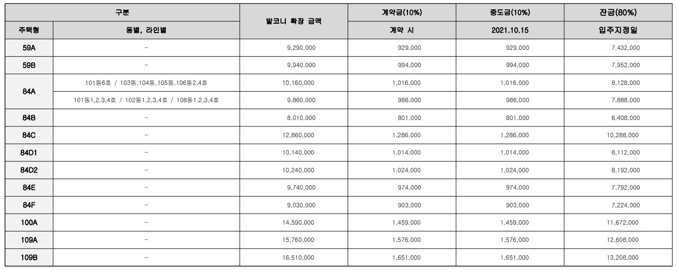 타입이 워낙 다양하다보니 분양가 정말 다양하게 분포가 되어 있는데요 보기 쉽게 한눈에 정리해보도록 하겠습니다.