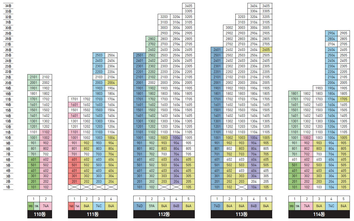 | 형태 | 59㎡A | 59㎡B | 59㎡C | 59㎡D | 74㎡A | 74㎡B | 74㎡C | 74㎡D | 84㎡A | 84㎡B |