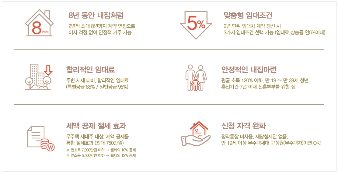 주변보다 임대료가 저렴하고 임대료 상승폭 역시 법적으로 정해져 있기 때문에 최대 8년까지는 임대료 걱정 및 이사 걱정 없이 안정적인 거주가 가능하다는 점이 있습니다. 하지만 민간임대주택은 현재 임대하고 있는 아파트에 대해서 우선 분양권을 가지게 되지만 공공지원 민간임대주택은 임대하고 있는 아파트의 우선 분양권이 없고 주택을 공급한 사업주의 선택에 따라서 달라지게 됩니다.